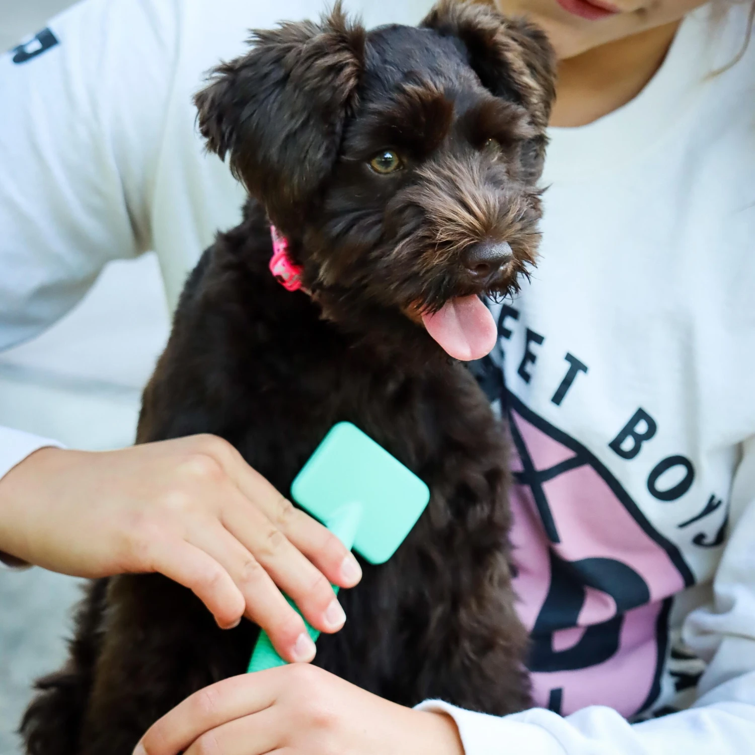 - Features a pad of flexible wire pins that contour to her body for efficient grooming.