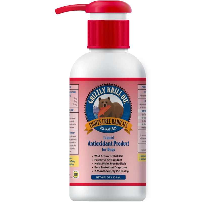 Grizzly Krill Oil is an obvious choice for anyone wanting to safeguard their pet against the harmful actions of free radicalsāthe unstable molecules created primarily during digestion. In addition to supporting your dog or cat in fighting free radicals, the inherent antioxidants in Grizzly Krill Oil also help support the health of your petās liver, ocular, respiratory, cardiovascular and vascular functions, as well as helping to maintain good health in all the bodyās cells and tissues.