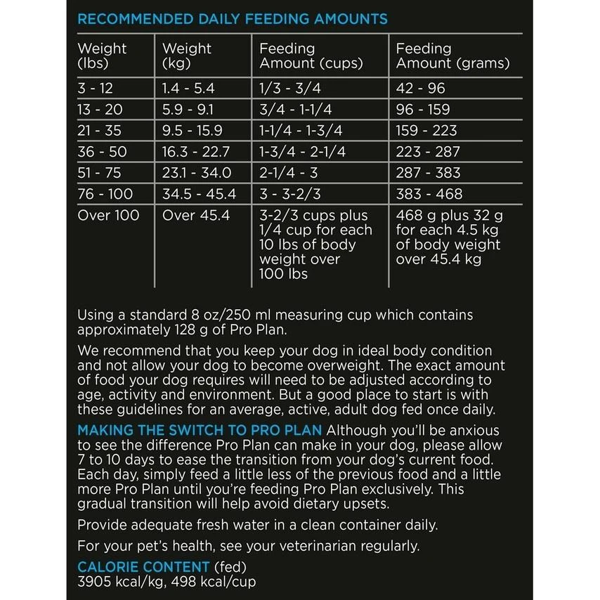Give your dog nutrition that performs when you serve up Purina Pro Plan FOCUS Sensitive Skin & Stomach Lamb & Oat Meal Formula adult dry dog food. Real lamb as the first ingredient helps to deliver high-quality protein your dog needs. The highly digestible formula features prebiotic fiber to maintain intestinal balance to promote digestive health. High-quality ingredients, including oat meal, rice, egg, and fish oil make this recipe a wholesome meal option for your favorite canine companion. Antioxidants in every serving help to support his immune system health. Formulated to support whole-body well-being and made without artificial colors or flavors, this super-premium dry dog food helps to keep your dog healthy, happy and feeling extraordinary while providing a taste he loves. Purina Pro Plan was the first dry dog food brand to use and be founded on the idea of using real meat as the #1 ingredient, and this recipe features lamb as a primary source of protein for your dog’s daily diet. Featuring nutrition backed by a team of over 400 scientists, including nutritionists, behaviorists and veterinarians, this dry dog food lets you feel confident your dog is getting the wholesome goodness he deserves in a delicious recipe he loves. Our Purina Pro Plan FOCUS platform offers specialized nutrition for dogs with different needs at every stage of life, whether you have a dog with a sensitive stomach, a large or small breed dog in need of weight maintenance, or a growing puppy. Offer Purina Pro Plan FOCUS Sensitive Skin & Stomach Lamb & Oat Meal Formula adult dry dog food as part of your faithful friend’s complete and balanced diet, and give him the nourishment he needs to be his best self throughout his healthy and happy life with you.