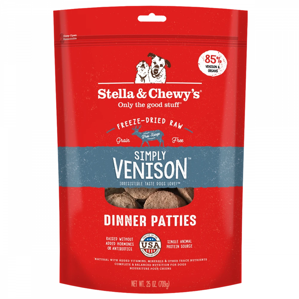 These Simply Venison freeze-dried patties (14 oz offering) are formulated to mirror a dog’s ancestral diet! There has never been a more convenient way to feed a biologically appropriate raw food diet. We believe dogs deserve to thrive on real, minimally processed food – the way nature intended.
